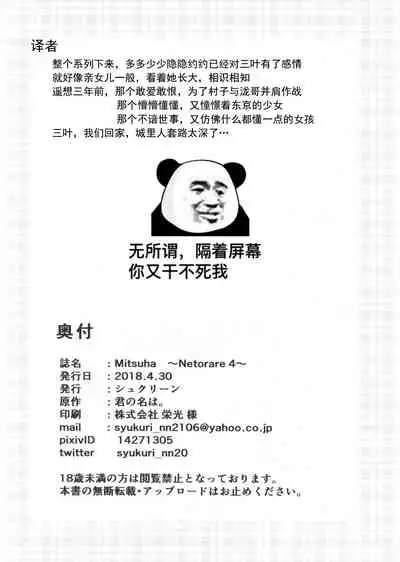 Mitsuha Pics (COMIC1☆13) [シュクリーン] Mitsuha ~Netorare4~ (君の名は。)[中国翻訳]