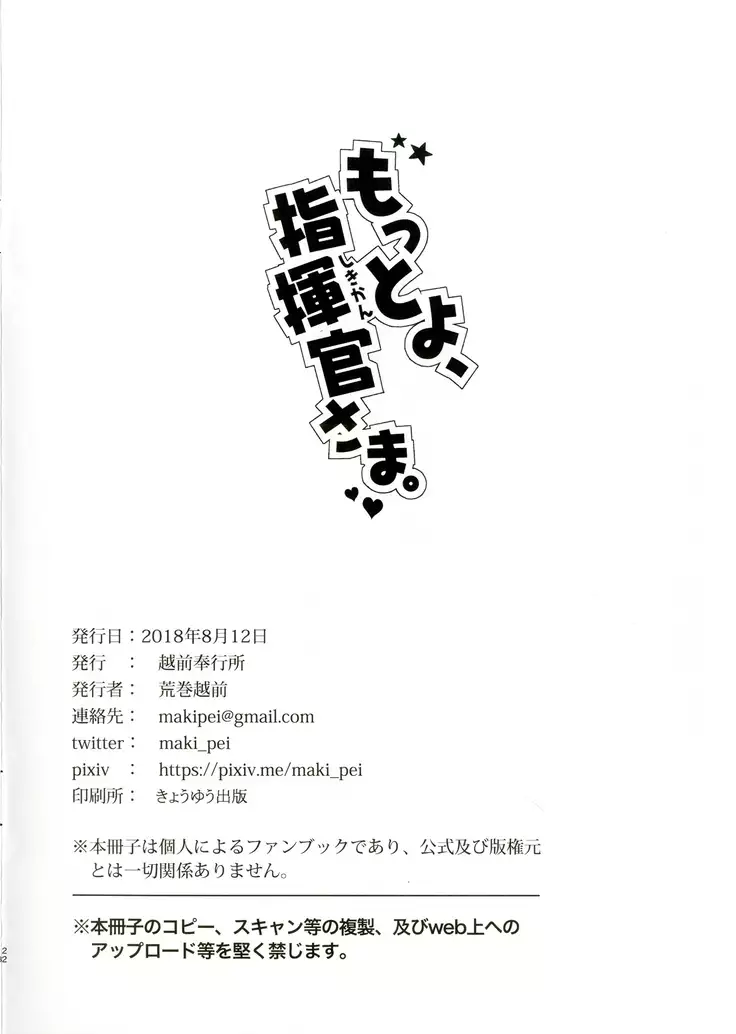 (C94) [Echizen Bugyousho (Aramaki Echizen)] Motto yo, Shikikan-sama. (Azur Lane)