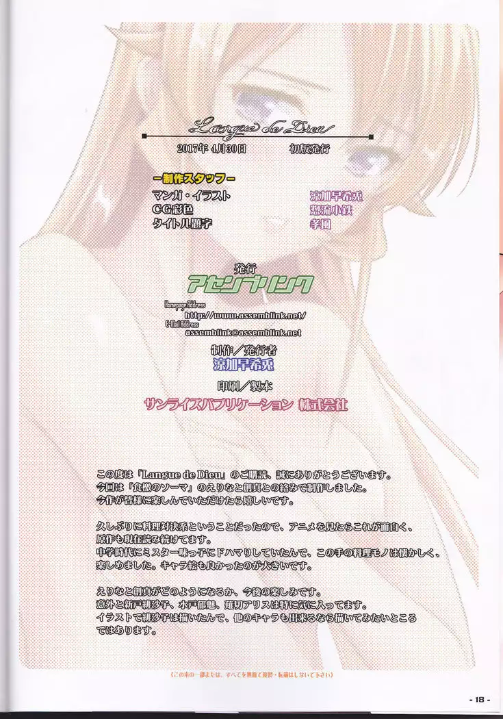 (COMIC1☆11) [Assemblink (Suzuka Sakito)] Langue de Dieu (Shokugeki no Soma)
