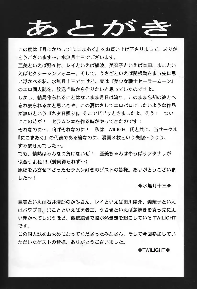 (C62) [NiKomark (Minazuki Juuzou, Twilight)] Tsuki ni Kawatte Nikomark (Sailor Moon) [English]